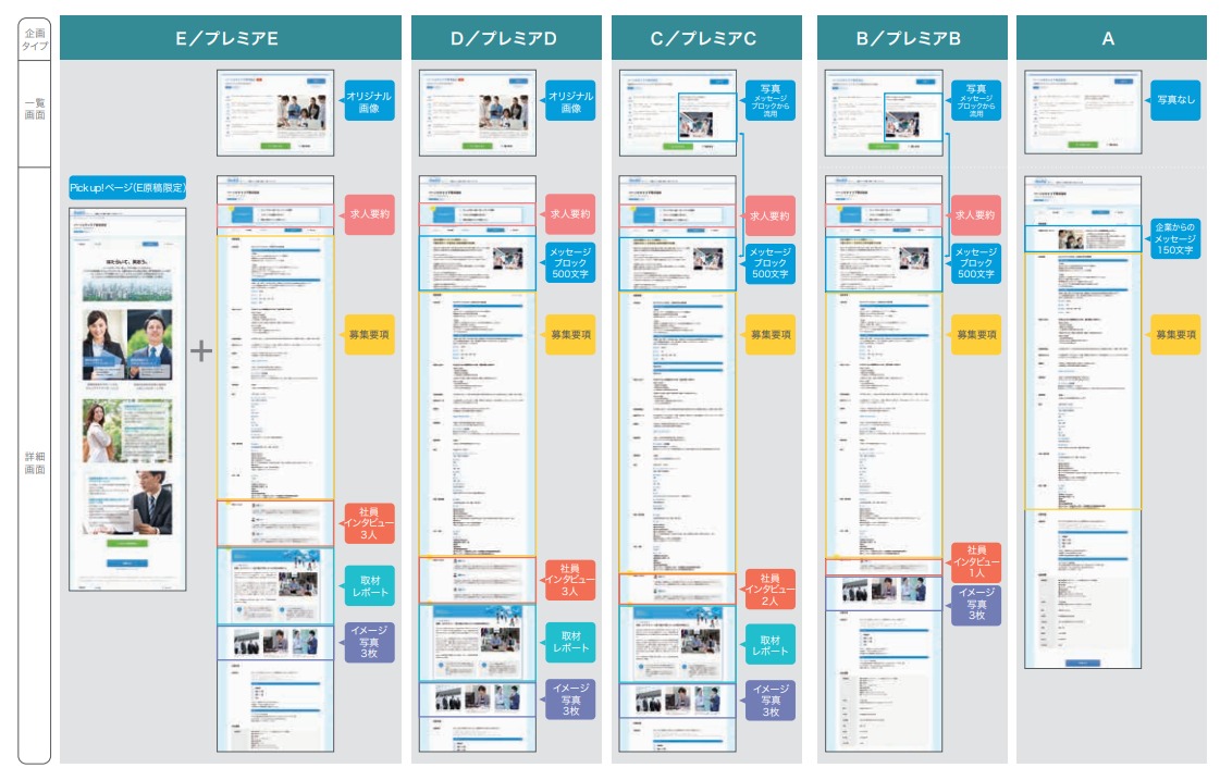 doda(デューダ)はEタイプ/Dタイプ/Cタイプ/Bタイプ/Aタイプの5つの企画があります。